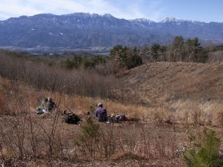 明けて、すっかり雨が上がっていた。予定どおり、東濃牧場から、おとみ山の疎開先の裏山(おとみ山はソンデ山といっていた)へ向かう。雨上がりの晴天とまではいかなかったが、春の風が心地よい。