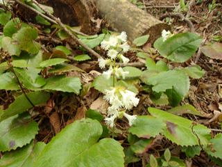 八王子山直下の、甲府盆地を見おろす岩場で昼休みとしたのち、今回のもうひとつの目的だった白花のイワカガミを見に行った。わずかに盛りを過ぎているようにも思ったが、まだまだ見ごろといっていいだろう。これだけの群落なのに見に来ている人はひとりもいなかった。
