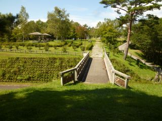 昨日も、大きな機械で芝刈りをしている作業員以外に人影はなかった。ことに、三角点のある、公園東側の展望台なんて、行く人があるのだろうか。石垣といい、鉄平石を敷き詰めた階段といい、半端ではない金がかかったろうに。