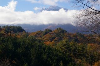 この時季、落葉で道がきれいだし柔らかいのは何よりである。先着のふたりが下ったあとは、誰もいない頂上となって、その後は誰も登ってこなかった。四囲の山は、富士山をのぞいては、頂上にわずかながら雲がかかっていたが、長く過ごすうちには全部取れ、無風快晴の中山からの展望を堪能した。