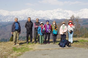1時間足らずで登れ、道はごく歩きやすく、頂上の桜並木越しの北アルプスが見事で、しかも訪れる人はほとんどいないという、なんだかウソのような山である。