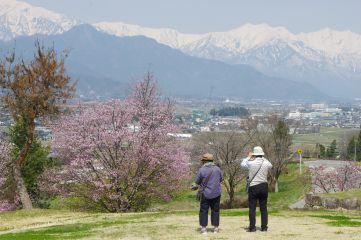 ならばと、余った時間で帰りがけに今度は北アルプス南部を眺めましょうと、池田町の展望公園に立ち寄って、桜と展望をさらに満喫、第4回目となる「エピソードのある山旅」は大団円となった。