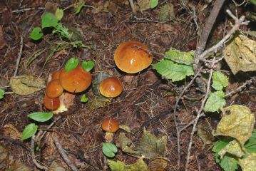 ひと月ずらして秋らしくなっているかと思いきや、なにせ今年の気候である。山の色は9月に歩いたときと変わらなかった。それだけに、出始めの最上級のジコボウが道端にいくつも見つかって、夜はキノコ鍋パーティとあいなったのである。