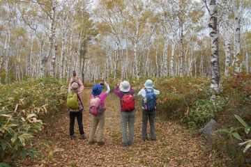 そして今日、木曜山行の計画に参加する予定だったが、何しろ雨の予報で、そのとおり、もう朝には降っていた。さてどうしましょう、傘をさしても歩けるような山道といったら選択肢は狭い。ここはあづまや完備の八千穂高原かと、先週に引き続いて出かけることにした。関西からの人にとっては白樺だけでも新鮮であろう。