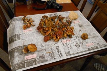 雨の予報のせいだろう、八千穂レイクにひとりの釣り人もいないのも珍しい。黄葉も一週間でぐっと進んで盛りに近い。晴れていても誰も歩いていない歩道には雨の予報で歩いている人がいるはずもなく、まったくの貸切で、しかも先週に引き続いてキノコの収穫もあって、これは夕餉のご馳走になった。 |