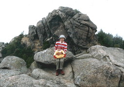 | 瑞牆山(6月9日) 前日の予報も悪く、朝起きるとやはり曇り空。とりあえず行き先を八ヶ岳周辺もしくは奥秩父と決めて、そちらの方向に車を向けた。登山中止となりそうな気配もあったので、クリオはお休みだ。 いくら日帰り登山でも、目標は前日、遅くとも家を出る時には決まっていないとよろしくない。一つの山に登るということは、とりもなおさず人生の貴重な一日をその山に捧げるということと同義なのだから、その日になっても悩んでいるようでは山の神様にも失礼というものだ。 以前は登りたい山が目白押しに並んでいたので、山を決める苦労などなかったが、日帰りに限定すれば段々と底をついてくる。六月ともなれば、緑も濃くなっていて、おいそれと藪山に向かうわけにもいかない。赤ん坊を背負っていればなおさらだ。 いや、実は日帰り圏でも登り残している山域はあって、それは僕の場合、大月から上野原近辺の山々で、これは主として車でのアプローチをするしかない僕にとって、山あいで道が狭く車の駐車場所を捜すのに苦労することが多いのが原因で、これは結構気が重いものなのである。 それに、無類の暑がりの僕にとっては、六月ともなればこの辺の山は対象外となる。僕が山に登る理由のひとつに涼しい所へ行きたいというのがあるから、この季節、住んでいる場所より標高の低い山に登る気はしない。 一宮御坂インターチェンジから高速に乗り、双葉サービスエリアで朝食を摂る。まだ、決まらない。梓山から甲武信ヶ岳へ登ろうかと思ったが、もう、少し時間が遅い。そこで瑞牆山が浮上してきた。 前回の赤岳で、登山口まで行って諦めた時には心がその山に残ると書いたが、瑞牆山も富士見平まで登って諦めたわけだから、次の週に金峰山に登って埋め合わせしたとはいえ、それはあくまでも金峰山で、瑞牆山の神様には欠礼をしたままだ。 しかし、また富士見平経由では芸がなさすぎるので、一度下ったことはあるが、まだ登ったことのない黒森側から、不動滝を経て登ることにした。 以前不動滝へ下った時は、瑞牆山荘に停めた車を取りに戻ったわけだが、小川山林道はともかく、舗装路に出てからのゆるい登りが無暗に長く、閉口したものだった。そこで今度逆コースで一周する時は、最初に瑞牆山荘の前に自転車をデポしておけばいいなと考えた。そうして不動滝にむかう林道が登りになり始める所へ車を置いていけば、あとでスイスイと自転車で坂道を下って、車を回収すればいいわけだ。 ところが急な決定とてそんな用意はない。それどころか僕は自転車を持っていないのである。でも、この方法はいろんな山で使えそうだ。登りは長くなるが、僕は登山で軽減すべきなのはむしろ下りのほうだと思っている。車利用で周遊コースを辿りたい時には有効かもしれない。 そんなことで今回は心ならずも小川山林道からの往復とする。 小川山林道に入るとすぐ未舗装路となる。今は高原野菜の畑となっているのが昔の松平牧場だろうか。車の腹をこすりながら行くと、道は二手に分かれる。直進するのは、もはや甲信県境に達しようかという黒森林道で、ダンプが何台も入っていくところを見るとまだまだ延長中なのだろう。尾根上には各地の景観をことごとく破壊した大送電鉄塔が威容を誇っている。 釜瀬川に沿って延びる小川山林道は右に折れる。 原全教さんによれば、このあたりにはすでに昭和の初めには広い道が登ってきていたようだ。『奥秩父続篇』でその林道を「これがあたりの森林全滅の先驅であると思へば、そゞろに寂しくなつてしまふ。この邊は甲斐の國として、最も多角的な、そして整備した自然美の地であるから、當局はなにを措いても保護の天職を思はなければならない」と書いている。今現在このあたりに広がる森は、もう以前のものではないのだろう。 その當局が、ここと尾根ひとつ隔てて南の天鳥川沿いで森を切り開いて立派な舗装路を造り、何やらせっせと整備している。全国植樹祭の準備をしているらしいのである。もともと森林に恵まれたこんな場所で新しく道を開いて植樹祭でもあるまいに。全教さんも雲の上で、さぞやお嘆きであろう。 林道の分岐地点が広いので車を置いて歩くことにする。おおきな堰堤のある林道終点までおよそ三十分、途中なにやら工事をしている。工事現場の人が渓を背負って歩いている僕を不思議そうに見ていた。林道の両側は新緑がみずみずしい気分のよい広葉樹林だ。以前下りに歩いた道だとにいうのに、ほとんど記憶がない。 この日は行く先が未定とて、いつも携えている二万五千分の一地図を持ってきていなかった。で、帰りにはこの林道を短絡しようと、屈曲の具合を見ながら登る。林道終点からもなお車が通れそうな道がしばらく続く。それもいつしか人の径となって、大きな垂直の岩壁を回り込む。 見上げるとボルトが点々と打ち込まれている。不動滝に至る目ぼしい岩壁はどこもそんな状態