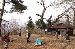 達沢山〜大積寺山〜大久保山 2008.4.12 諸事情で珍しく土曜日まで順延した木曜山行だった。とにかく桃源郷への下降というのがテーマだから、この時季を逃すと次は翌年になってしまう。前年と同じく達沢山を選んだので、下る尾根を変えることにした。 桃の盛りの土曜日とあって、今まで人に会ったことのない達沢山にも多くの登山者がいた。しかし頂上から桃源郷に下ろうとする人はいないらしく、頂上を出たら誰ひとりいなかった。この時季、それをしないでどうするのと思う。 前年は旭山への尾根を下ったが、この年は大積寺山を経て蜂城山につながる尾根を下ることにした。これはわりと長丁場なうえに藪っぽく、達沢山の尾根の中では難しいと思う。 当初は蜂城山へ下るつもりだったが、桃源郷を俯瞰するにはこちらのほうがいいだろうと、大久保山へ下ることにした。大久保山から少し下ると大文字焼きをする斜面の上に出るのだが、木が刈り払ってあるので眺めがいいのである。トップの写真がそこからで、このくらいの高さが桃の色を出すには適当かと思う。 下ってからタクシーで車を回収するつもりでいたが、花の盛りとあって、タクシーが出払っていてつかまらず、困ったのを思い出した。滅多に休日に行動することがないから、そこまで考えが及ばなかったのである。やはり山は平日に限る。 (2015.3) 木曜山行の報告へ |