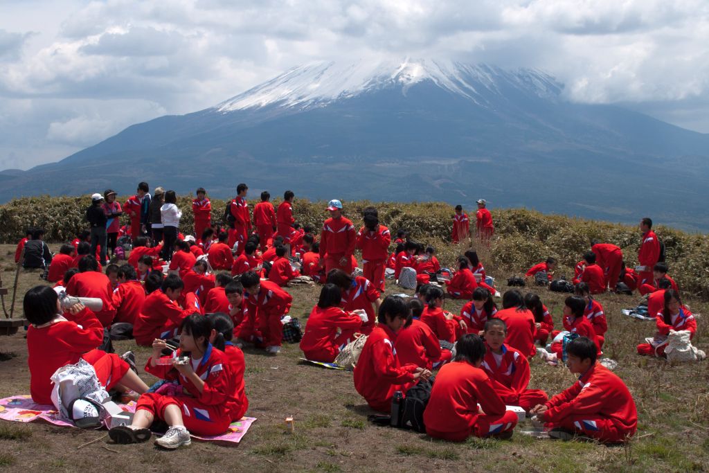 竜ヶ岳 2012.5.11 2006年に出た『山梨県の山』(山と溪谷社)の最初の版では竜ヶ岳は載せず、そのとなりの雨ヶ岳を載せた。そのときすでに人気の山となっていた竜ヶ岳はどうせいくつもガイドブックに書かれているのだから、よりマイナーは方を選んだのだったが、2016年に全面的に書き換えたときには雨ヶ岳を落として竜ヶ岳のほうを載せることにした。 そうしたのは、このとき端足峠の新緑の峠道がすこぶる良かったからで、しかもほとんどのガイドブックは本栖湖キャンプ場からのルートを書くのみで、端足峠からのルートがあまり紹介されていなかったからだった。 天下の富士をもっとも間近に見られ、頂上は広く、しかも登山道に危険はなく、麓に団体が泊れる宿泊設備があるというのだから、学校登山には最適なのは当然で、頂上ではこうした状態になるのも仕方ないことである。 それにしても服装くらいは自由にさせればいいものを、と思うのは、制服からの解放が自由の獲得だった学生時代を過ごした世代の言い草で、今では制服の良し悪しで学校を決めるというのだから時代は変わったのである。おそろいのジャージで歩くことなどなんら痛痒に感じないのであろう。 (2018.1) 木曜山行報告へ |