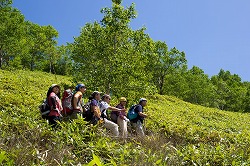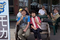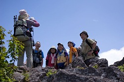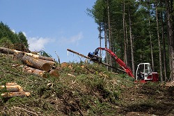 角間山 2013.7.11 10人乗りのロッジ山旅号には乗り切れなくて、Sさんの車まで駆り出したのだから何とも大人数で、そうなってしまったのは木曜山行報告に書いたとおり。 願ってもないような角間山日和だったなあと、たわらさんの写真の緑と青空を見て思い出す。それにしても、右段一番上の写真はまるで電車ごっこをしているみたいですな。 下山中に重機での伐採の様子をしばし見学したが、この機械のすごいったら、つかんだ落葉松の枝を一気に払ったのち輪切りにしていく。それがほんとうに一瞬なのだ。これならひと山を禿げさせるのもわけないだろう。 最後の写真は、地藏峠のドライブインにてソフトクリームで祝杯をあげているところです。 (2019.2) 木曜山行報告へ |
