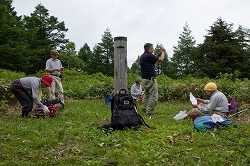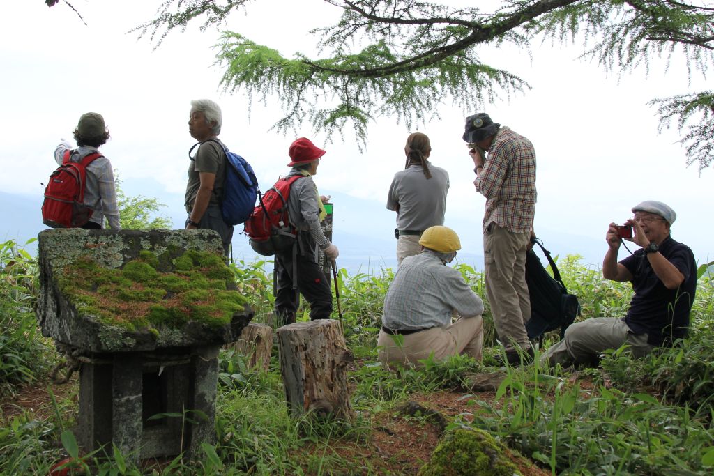 棧敷山・小棧敷山 2014.7.17 右三段目に写っている深田澤二さんの想い出を少し。深田澤二さんとの山々 今ではおそろしく規模が大きくなって、大半がビジネスに使われているのではないかと思われるヤフーオークションだが、私が利用し始めた2000年初頭ではまだまだ牧歌的で、売り手と買い手がメールでのんきにやり取りをしていた。今ではそんな部分もビジネスライクになって、要するに運営会社がぜったいに損をしないようなシステムになっている。 山岳書に限らず、古本をオークションで手に入れようという人はまだあまりおらず、私はかなり安い値段で多くの本を落札したものだ。利用者が膨大になった今では、相場をそうはずれることもないので、売る方も買う方もあまり面白くなくなってしまった。 ロッジの書棚にある『深田久弥・山の文学全集』(朝日新聞社)も2001年にオークションで落札したものだが、驚いたのは、売り手のYさんからのメールに「この本は深田久弥氏の息子さんの澤二さんに譲ってもらったものです」とあったことである。 茅ヶ岳で久弥氏が病死したときの同行者山村正光さんとはずっと以前からの知り合いだったし、すでにその当時、ロッジ山旅の客人として、久弥氏と親交の深かった横山厚夫さんや大森久雄さんとも面識があったから、久弥氏のことも折々に聴いていたのである。 そんな驚きをメールに書いてYさんに送ったところ、以下のような返事がきた。 本当に奇遇なことですね。 私は現在51才になりますが、澤二さんとは高校(世田谷の日本学園高校)のときに天文部であちらが2年先輩でした。 土曜日には毎週徹夜で流星観測をしたりしていました。 日曜の朝は近くの(歩いて5分)深田家にいって志げ子夫人に朝食を作って貰ったりしていました。 お兄さんの森太郎さんとはお宅が澤二さんの隣なので何回かお会いしたことがあります。 久弥氏本人とは挨拶程度の交流ですが、書斎の九山山房にはいって山の本(現在は国会図書館にあります)をながめていました。 澤二さんとは一緒に山登りもしましたが、最近は私はひざが十分でないため登っていませんが澤二さんはご家族と行っています。 最近は澤二さんとは囲碁をやっています。 Yさんのメールには、そんなことならロッジの本棚に寄贈すべきだった、代金をもらって恐縮ですとも書いてあった。しかし、あらかじめわかりっこないことだからどうしようもない。これ以外にも、本を蒐集しているうちには奇遇としか思えないことがこれまで何度もあった。人間にも本にも運命があるのだと思う。 -------------------------------------------------------- 実際にお会いする前から上記のような奇縁のあった深田澤二さんのことは横山厚夫さんからかねがね伺ってはいたが、初めてお会いしたのは2005年の暮れ、山村正光さんの葬儀のときで、そんな場面だからあいさつを交わしたくらいのことだった。 親しくお話ができたのはそれから2年半あと、鷲ヶ峰にご一緒したときのことで、横山さんがロッジへ誘ってくださったのが実現したからだった。前々から誘ってくださってはいたのだが、まだ現役の高校教師だっただろうから、平日に休むのはなかなか難しかったのだと思う。前述の、オークションで落札した全集のことを話したら覚えていて、家に余分があったのでYさんに譲ったということだった。 お父上の久弥氏の雰囲気をよく受け継いでいるのが澤二さんだと横山さんから聞いていたので、久弥氏のことを知らない私は、逆に澤二さんから父君の人となりを想像したりもした。 春風駘蕩というか、物言いも動作もゆったりとしていて、山でも一番後ろをゆっくりと遅れてついてくるのが常だった。そんなのんびりとした一例として、2015年初夏の物見石山の帰りがけ、麓の岳の湯温泉でひと風呂浴びたときのエピソードを紹介しよう。 私はカラスがカラスの行水をしたくらい風呂に入るのは早いが、私がさっとひと風呂浴びて(むろんすべての作業は済ませて、自分ではゆっくりしたつもり)脱衣所へ出ようしたら、入れ替わりに澤二さんが入ってきた。「えっ、長沢さん、もう出るんですか」「えっ、澤二さん、これから入るの」。要するに、私がひと風呂浴びている間に、まだ澤二さんは服を脱ぐ作業をしていたわけである。いくら私の風呂が早いといってもこれはない。 毎年一度は山歩きをご一緒していたのが、2016年のゼブラ山以来、しばらく間が空いてしまったのは、体調を少々崩したからだと聞いていた。しかし2019年の正月には、今年はぜひロッジへ行きますよと書かれた年賀状をいただいていた。 横山さんから澤二さんが亡くなったという連絡が入ったのはその年賀状を読んで間もなくだった。正月2日に体調を崩して入院され、4日にお亡くなりになったという。寝耳に水とはこのことだった。 ご葬儀は13日で、私も参列した。まだ70歳を過ぎたばかりだったとはあまりにも早い。そのゆったりとした立ち居振る舞いのごとく、この世
