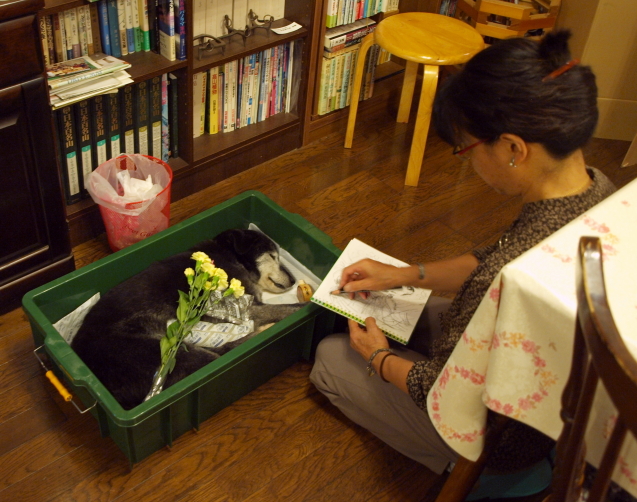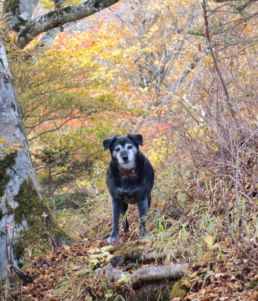 高校時代に読んだ山の本の中で印象の強かった一冊に芳野満彦著『山靴の音』があった。この本の白眉は八ヶ岳での遭難手記「雪と岩の中で」だが、もうひとつ「ゴンベーと雪崩」という忘れがたい文章がある。 これは芳野氏が上高地徳沢園で冬季小屋番をしていたとき、ゴンベーという犬と冬の穂高の岩壁を登った話である。その途次ゴンベーは墜落や雪崩などのアクシデントに遭いながらも見事に生還する。 この文章を読んで山と犬が私の中で強く結びついたように思う。犬と山を歩けたらどんなにか楽しいだろう。しかしそれが実現したのは私が40歳になろうとする頃であった。 90年代半ば、私たち夫婦は御坂峠の茶店に住み込みで働いていた。ある日、峠道で首輪のない真っ黒な犬を見つけた。棄て犬に違いない。まったくの子犬ではなかったがまだ成犬でもなかった。山中の一軒家での暮らしに犬がいれば楽しかろうと思っていた私たちはこの犬を飼うことにした。 犬には棄てられたことがわからない。初めのうちは前の飼い主が戻ってくると思ってか車が停まるたび降りてくる人をじっと見ていた。いつしかそれもなくなったが、ついに一生ごくわずかながらよそよそしさが残ったように感じられたのは、犬の健気さか不憫さか、いや、生まれながらの飼い主ではなかった私の引け目からくる錯覚だったか。 クリオと名づけられたこの雄犬は、それから2年余り私たちが峠にいる間は放し飼いで御坂の山中を勝手に走り回っていた。したがってその間山歩きに連れて行ったことはほとんどなかった。 クリオと頻繁に山に行くようになったのは私たちが峠を降りてからで、日がな一日玄関先につながれる破目になったクリオの不本意を思ったからだった。 犬を山で放すことを嫌う人も多いことを知らぬではないから、もともと私の好みでもあった人けのない藪山へ向かうことがますます多くなった。 クリオとの山歩きは、しかし私が思い描いていた、私の後ろを犬がおとなしく着いてくるといったものではなかった。リードをはずすやいなやクリオはまっしぐらに山の中へと消え去り、たまに様子を見に来てはまたどこかに消えるといった具合で、一緒に歩くというにはほど遠かった。それにしても、移動し続けている私を追尾する能力には毎度目を見張らされたものだ。 私たちが八ヶ岳山麓に宿を開業してからは、クリオは多くの人とも山行を共にすることになった。いったい彼は何人といくつの山に登ったことだろう。しかしそれも去年の6月で終わりになった。体力が衰えたのに本能で鹿などを夢中で追いかけ、息も絶え絶えに疲れることが多くなったからである。普段の朝夕の散歩にも時折よろけてしまうクリオは14歳になっていた。 山の用意を始めると連れて行けと吠えたクリオだったが、しばらくはせがんだものの、それもやがてはなくなった。 一度近くの山で遊ばせてやろうと思っていたのを果たさぬうちに片方の後足が利かなくなった。その後背中にできた腫瘍が悪性とわかり私たちは暗黙のうちに覚悟した。 この9月16日から1ヶ月間、中村好至恵さんの個展が日野春アルプ美術館で開催された。中村さんはその間私の宿に泊まり、そのお客さんなどで慌しい日が続いた。 10月に入ってクリオの具合はいよいよ悪い。身体をなでるといたるところで転移した腫瘍に触れた。 15日、中村さんの個展が終わる前日、宿はある会合で満室となった。クリオの命旦夕に迫ると私は感じていたが、こんな忙しい日に死なれでもしたらという不吉な心配が頭から離れなかった。 幸いそれは杞憂に終わり客も寝静まった。だがクリオの容態は依然悪かった。痛いのだろう、苦しげな声をあげる。妻が夜中まで身体をさすってやるといったん落ち着いたがまたうめき出す。代わって私が朝の支度をしながら身体をさすってやった。朝からは娘が私に代わった。 客を送り出したあと個展の最終日に私も顔を出して正午前に帰った。勝手口で寝ていたクリオが目をあけて私を見たのでほっとし、頭を少しなでて家に入った。しばらくして吠え声がする。トイレの催促だろうと思って妻に任せ、私は奥の部屋から出なかった。 その直後、妻と娘の悲鳴のような呼び声でクリオのもとに駆けつけた私は、両手で顔を覆ってしゃがみこんでいる妻の姿に彼の命が召されたことを知った。 クリオに呼ばれた妻が彼を抱き上げて庭の草の上に寝かせ、居場所の掃除をして振り向くともう息絶えていたという。おそらく最後の声は明るい外の草の上で死にたいということだったのだろう。 夜半から続いた大雨は朝には上がって秋としては異様に暖かい晴天となっていた。クリオの横たわる草もすっかり乾いて最期のしとねはいかにも柔らかい。 再び波打つことのない毛並みをなでてやりながら涙が止まらなかった。しかし滂沱と涙を流しつつも物事の終わった解放感を私は感じずにはいられなかった。うそのように明るい空の下、終わりを呪いそ