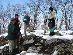2002年3月は、大森、泉、三好、長沢の諸兄姉と同道だった。信州峠に雪が見られなかったのでスパッツをしないでいったら上には結構な雪があり、ズボンの裾をすっかり濡らしてしまったことをよく覚えている。また、一電車遅れた三好さんが韮崎から信州峠まで長駆タクシーで追いついてきたなど、ついこの間のような気もするが、それも、もう5年も前のことになるとは年月のたつのの速いのには本当に驚いてしまう。