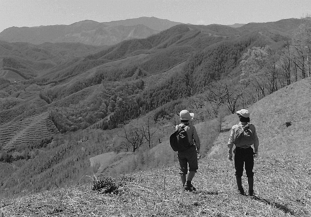 上 前日の雨もきれいにあがって、なんという好日か。藤尾山から犬切峠へくだる尾根には一部防火線が切ってあり、眺めが開けた。乾徳山から黒金山、国師岳を指差しながら何度か足をとめた。ワラビの収穫も嬉しかった。