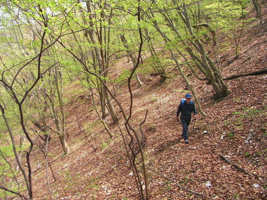 その岩瀬さん、この時の笹尾根歩きを後々、ずっと「あれはよかった」といっていた。ちょうど春本番の季節、笛吹、笛吹峠、丸山、土俵岳、日原峠と歩いた。笛吹の集落ではヤエザクラが満開、峠への登りでは新緑の林をくぐって、岩瀬さん、とても嬉しそうだった。