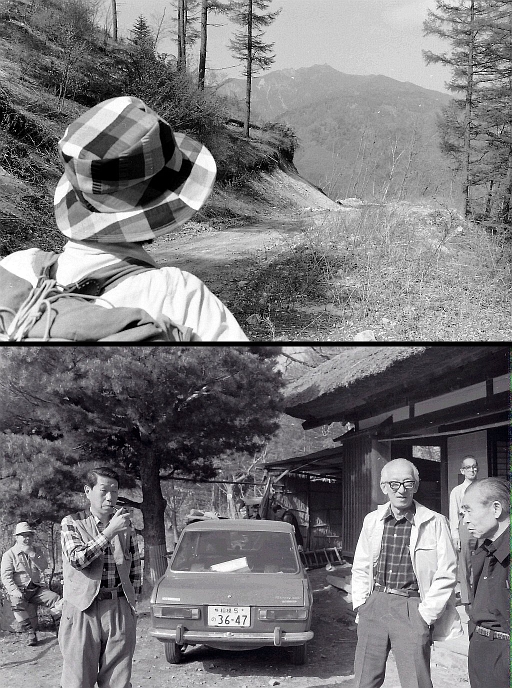 上・中 この時は近藤信行・緑夫妻と同行し、木賊峠を越えて金山に行った。甲府からタクシーは金桜神社まで、あとはえっちら猫坂を越し下黒平から峠道を登った。ヤナギのワタゲが若緑の林に飛ぶ、実に気持ちのよい五月晴れの日だった。木賊峠にあがると、すでに車道にはなっていたが、いまよりはもっと明るい雰囲気で「木賊展望台」と標識がたつところもあった。下黒平から登る昔の峠道は、もう廃道ではないだろうか。