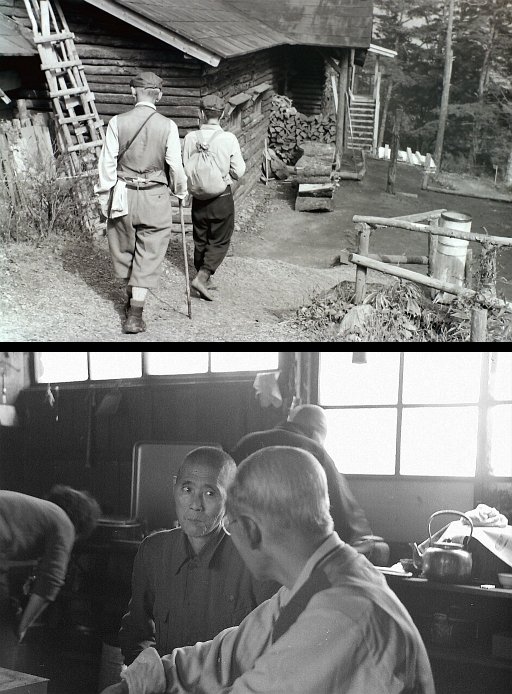 下.雲取山荘にて こちら向きが山荘主人の富田治三郎さん、その右に日高さん。富田さんは、この後12月に病気で亡くなった。