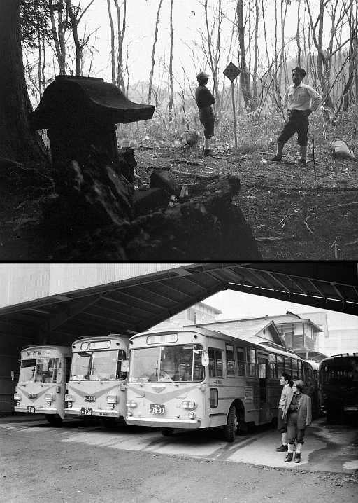 上 杖植峠のくだり道。 宮路から歩きだして大福峠へかかる辺りは、5万図「万場」(当時はまだ2.5万図はなかった)に破線は記してあるもののまことに分かりにくいところだった。地形図と首っ引きだったが、やがて尾根上を歩くようになると、道もはっきりしてきた。杖植峠に登りついたのが2時。くだり始めると行く手には浅間山が大きく、八ヶ岳や北アルプスも見えて大感激だった。私はこれで西上州が大好きになってしまった。