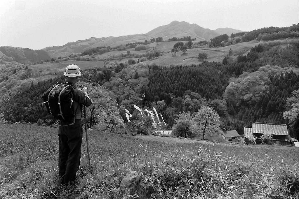 上 栗和田の集落。季節柄、鯉幟があがっている。八高線小川町駅からタクシーで栗和田まで乗り、粥新田峠を経て大霧山に登った。もう一度、このような陽春の日に、この辺の里山を望月さんと歩けたらいいなと思う。