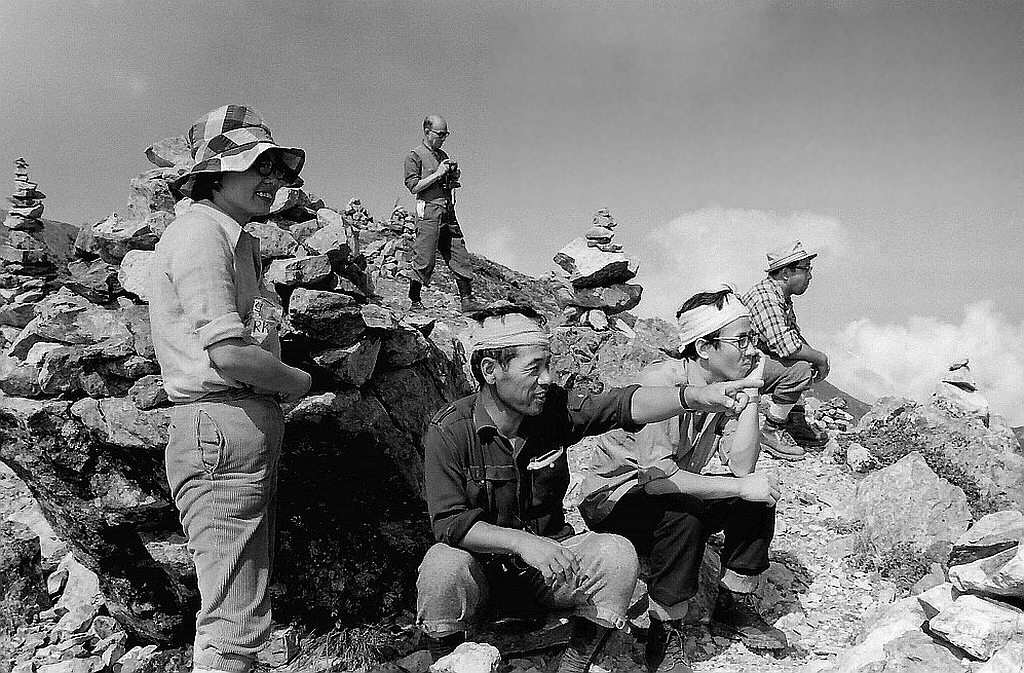 東京からは望月達夫さんのほかに山田哲郎、山本健一郎、中村昭の諸氏と私たち2人が参加した。3日目の聖岳を越した兎岳付近から望月さんの調子が悪くなり、皆で荷物を持つことになった。しかし、望月さんのザックを開けてみれば、なんのことはない、ロールペーパー2巻きぐらいしか出てこなくて大笑いだった。