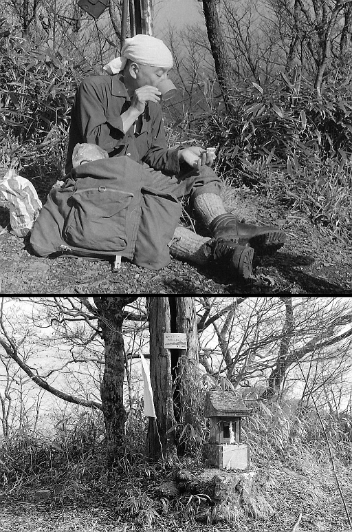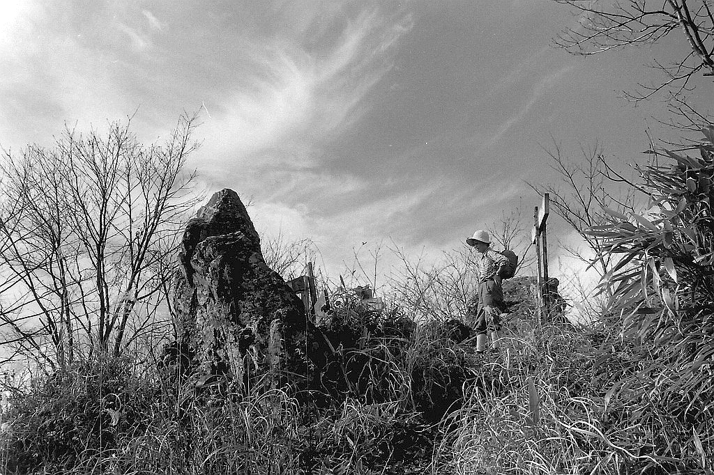 下 蕎麦粒山から尾根伝いに10分もいったところの小峰が仙元峠で石社があり、秩父側の浦山川の谷にくだる道が通じている。今は刈払いがしてあるが、川崎さんといったときは笹がかぶっていて、かきわけなければならなかった。だが、『雪山薮山』の著者ともなれば、こんなものは薮のうちにもはいらず、「どうということもないよ」。
