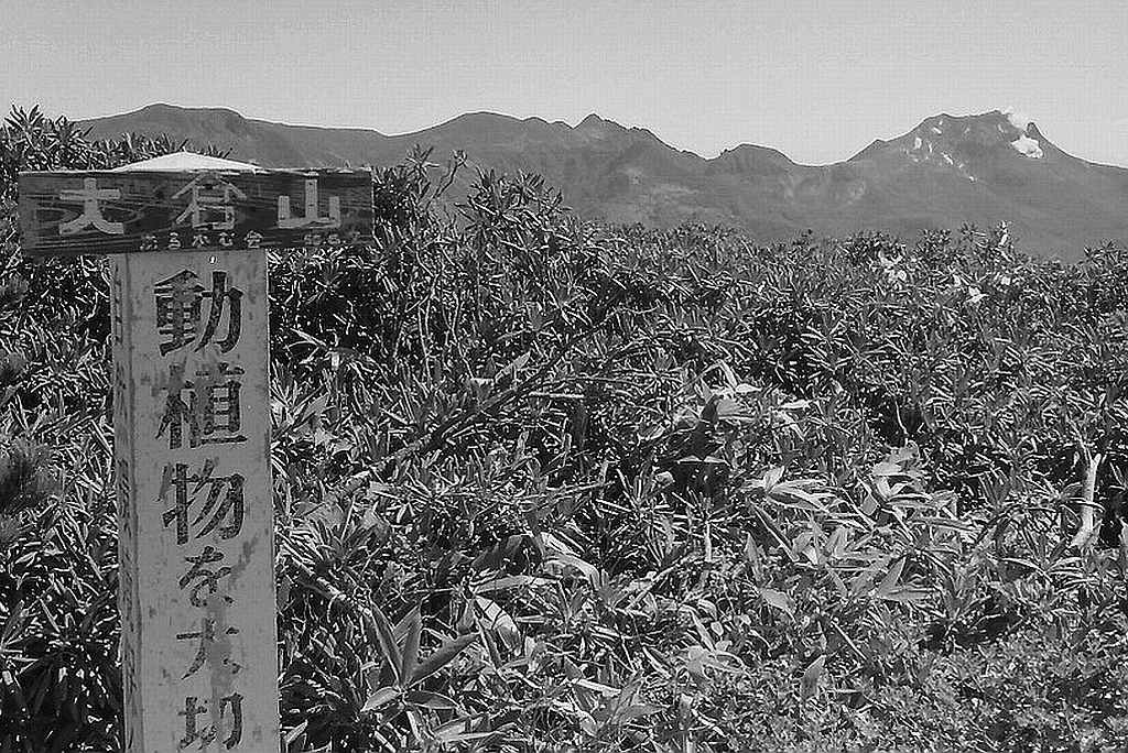 下 五葉ノ池。大倉山の手前の尾根上にあった。右遠くに噴煙をはく茶臼岳が見えている。
