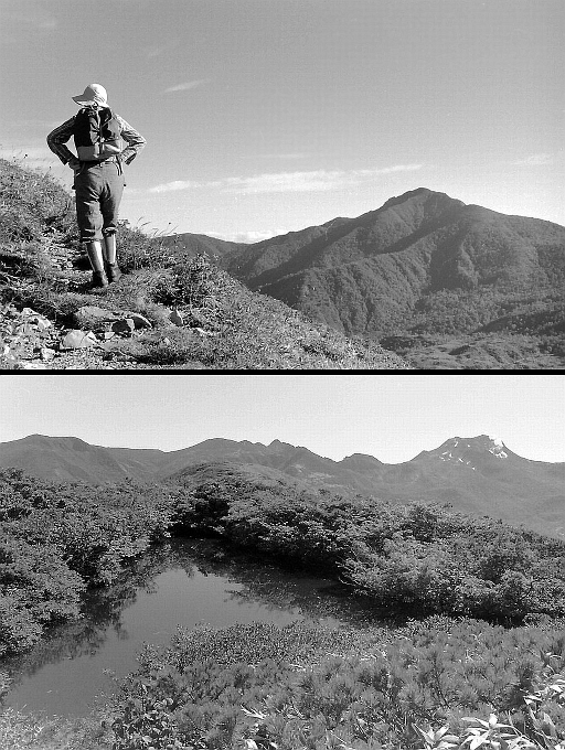 前夜は那須三斗小屋温泉の煙草屋旅館に泊まり、この日、大峠から大倉山1885b、三倉山1854bの尾根を縦走し、会津側の音金におりた。初秋の好日、アカトンボの大群が空高く飛んでいくのを眺めたりしながら、快調そのものの山行だった。