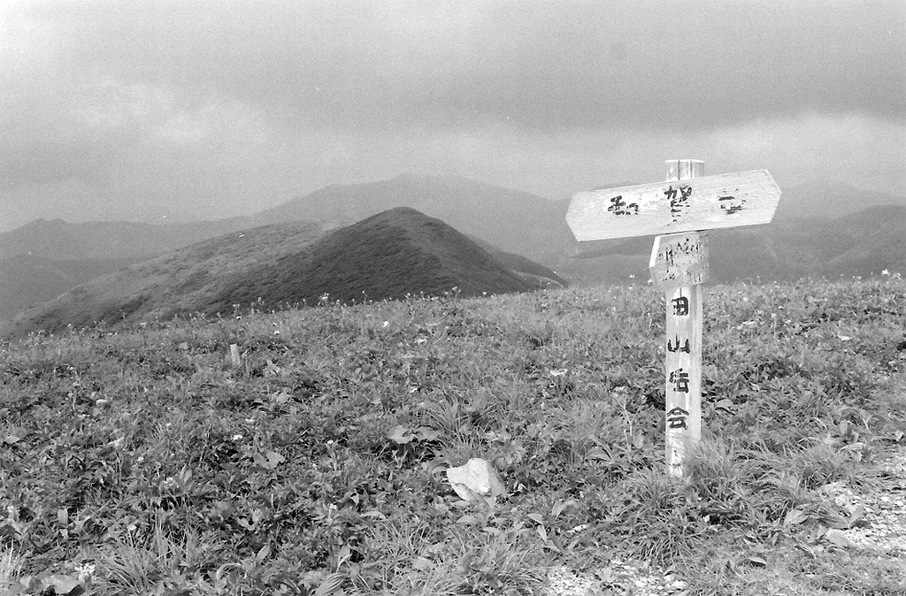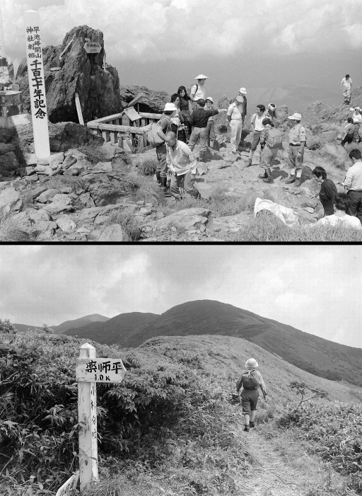 上 和賀岳山頂。岩手・秋田県境にあって標高1440㍍。今はどうか知らないが、当時は交通の便が悪く、普通にはなかなか行きにくい山だった。私と家人は、望月さんが「坂倉さんから聞くところによると地元の人たちが車をだしてくれるそうだ。いい機会だから行ってみようではないか」と誘ってくれての参加だった。