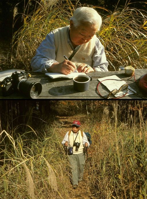 浅野孝一さんが亡くなって12年。日本山岳会誌『山岳』第98年(2003年)に載る追悼は愛弟子ともいえる平田謙一氏の筆になるが、その一節に「生粋の江戸っ子らしい気っ風のよさと、少々、毒気のある物言いが持ち味であった。辛辣な発言や筆は、大拍手の陰で、ときには憎まれ口との両刃の剣をなし、反発や論争の種にもなった。ただし、決して偉ぶり威張ることはなく、親しい友人や山仲間はもとより私のような後進まで、わけ隔てのない面倒見のよさと気づかいも持ちあわせていた」。 今、私はそれを読んで、まことにその通りと合点すると同時に、「〈なかなかのチョウシノヨサ、なかなかのソソッカシサ〉もまた、浅野さんの身上であった」と付け加えたいのである。さらには、多少の〈アツカマシク、かつミガッテナ所業〉も、友人たちに「浅野さんじゃあ仕方ないや」といわせる愛嬌も持ちあわせていた。 これは、そんな浅野さんと歩いた晩秋の南高尾山稜。親しく謦咳に接して、忘れられない山歩きとなった。浅野孝一さん、70歳の年。 上 南高尾山稜中、唯一の広い展望が得られるところ。目の下には津久井湖、遠くには道志方面の山々が眺められる。 中・下 浅野孝一(1926~2002) 東京は銀座の生まれ。10代より山登りを始め、一時は獨標登高会にあって先鋭的登山にも専念。多くの岳人と親交を結んで第2次RCCの設立にも参加した。お歳を召してからは「逍遥登山界の総帥」的存在でもあった。日本山岳会には1979年の入会で会員番号8515。ガイドブックをはじめとして多数の著書があり、とりわけ『行く雲のごとく‐高畑棟材伝』は後世に残る労作といってよいだろう。 追記 この一文を書き終えた7月12日の午後、西荻への散歩ついでに古書の盛林堂をのぞいてみると、上記の『行く雲のごとく‐高畑棟材伝』(山と溪谷社/1999)が新本同様で500円。これもなにかのご縁に違いない、手持ちの1冊があるにしろ、これでもう1度読んでみようと買い求めた。なお、この伝記は最初『山岳』第89年、第90年に上下にわたって掲載され、のちに山と溪谷社から単行本として出版された。 (2014.7) 中、下の写真はクリックすると大きくなります |