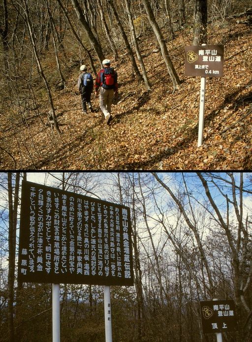栃木県の川治温泉近くに南平山(なんだいらやま)という1007.4㍍の小さな山がある。昔、戦いに敗れた平家の残党が落ちてきて、この山のどこかに財宝を隠したという伝説もともかく、川治温泉といえば、私が戦時中小学6年生の時に集団疎開で半年間くらしたところでもある。当時の思い出には嫌なことが大半だが、野岩鉄道会津鬼怒川線が通じた今日、その辺がどう変わっているか一度くらいは見ておくのもよいだろう、それならば南平山に登るついでにと出かけてみた。 同行は高校時代からの友人斜山三吉と寺田政晴君。寺田君は斜山と何回か一緒に歩いたことがあり、その都度「斜山さんはいい人だ、いい人だ」と繰り返しいっていた。それを「おい斜山、寺田君にいわせると、お前はいい人なんだそうだ」というと、「当たり前よ、横山と較べれば、誰だっていい人だ。中でも俺なんかダントツだよ」。斜山については本欄「18. 苗場山」を参照のこと。 上 山頂からは木の間ごしに高原山が大きく見えていた。目の下は川治の温泉街。 中・下 南平山の道中。 (2014.7) 中、下の写真はクリックすると大きくなります |