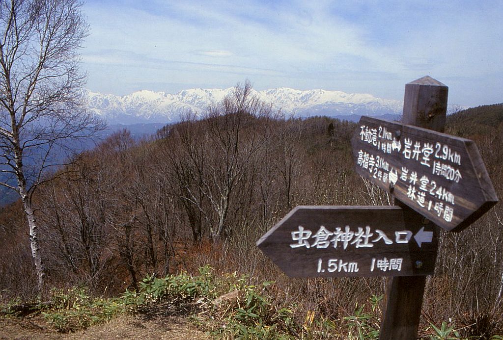 当時、阿佐ヶ谷に住んでいた日本画家のYさんが私の本を読んだと手紙をくれ、それをきっかけにご夫婦でわが家へ遊びにみえたし、個展の通知をもらって見に行くようにもなった。と、するうちに長野市の街外れに画室を得て東京を離れたが、今度は「山登りかたがたお遊びにいらっしゃい。私たちもご一緒しますから」と連絡があった。そこで寺田政晴君を誘って出かけ、初日に聖山に登ったあと夜はYさんの家でご馳走になり(泊りは市内のビジネスホテル)、翌日、Yさん夫婦ともどもに虫倉山に登った。