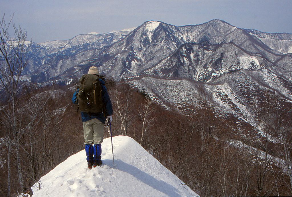 湖水面の標高は660㍍ほどだから標高差はいくらもなく、1時間半で登ってしまった。山頂にはアンテナが立っていて少々艶消しだが、眺めは抜群。利根川水源の雪山をぐるりと眺めて至福のひと時を過ごした。下りは西北方向の小尾根をたどって谷におりた。同行は山田、中野、寺田の諸氏。