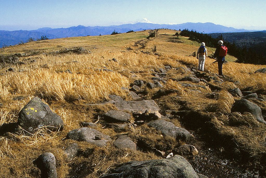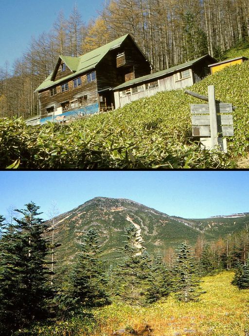 これは本欄「2.八子ヶ峰 1983(昭和58)年10月28日」に続く2日間、大河原峠‐双子山‐双子池ヒュッテ泊‐天祥寺原‐竜源橋‐蓼科温泉郷と歩いたときの3枚。同行は1970年夏のスイス旅行で一緒だった二人だが、今となっては、そのお一人はすでに彼岸に渡り、あれこれと思い出すばかりである。 上 大河原峠から登って双子山にかかる辺り。広々とした尾根は「また、来たいねぇ」の一言。これ以後は当ホームページご主人の同行を得るなどして、2回ばかり「また、来る」ことができた。 中 最新のヤマケイ付録の『山の便利帳』には双子池ヒュツテとあり、「6500円(大部屋)~7500円(個室)」となっているが、これは食事付の料金だろうか。 下 天祥寺原続きの道では正面に蓼科山が大きかった。 (2015.7) 中、下の写真はクリックすると大きくなります |