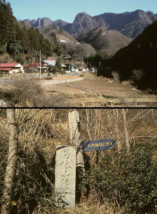 道標に教えられるままに登り道をとれば、まず大円地越の峠にあがった。その先はほんの30分。NHKの奥久慈テレビ中継アンテナを見ると、早くもそこが東の山頂だった。わずか先の西峰には男体山神社が祀られ、まずまずの眺めが得られた。なお、この日は西金駅から1つ郡山寄りの上小川駅へおり、常陸大子にでて街中の菊屋旅館泊。夕食後にテレビをつければ、明日もお日様マークばっちりの予報だった。