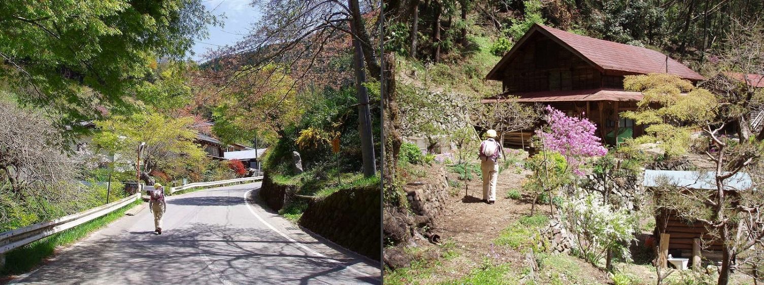 中央沿線近間の山。藤野駅発のバスは終点の和田まで。以下は、一軒家を経て尾根にあがったあとは東に歩いて醍醐丸(867b)。ここからは北に吊尾根を市道山へと向かったものの、途中から、もう、この辺で終りにしようと強引に右下の醍醐川の谷におりた。あとは車道を関場まで歩き、陣馬高原下から来るバスを捕まえて八王子へでた。和田の集落も一軒家も春爛漫。ツツジがことのほか美しかった。醍醐丸からの大岳山は、これもまた、春の眺め。