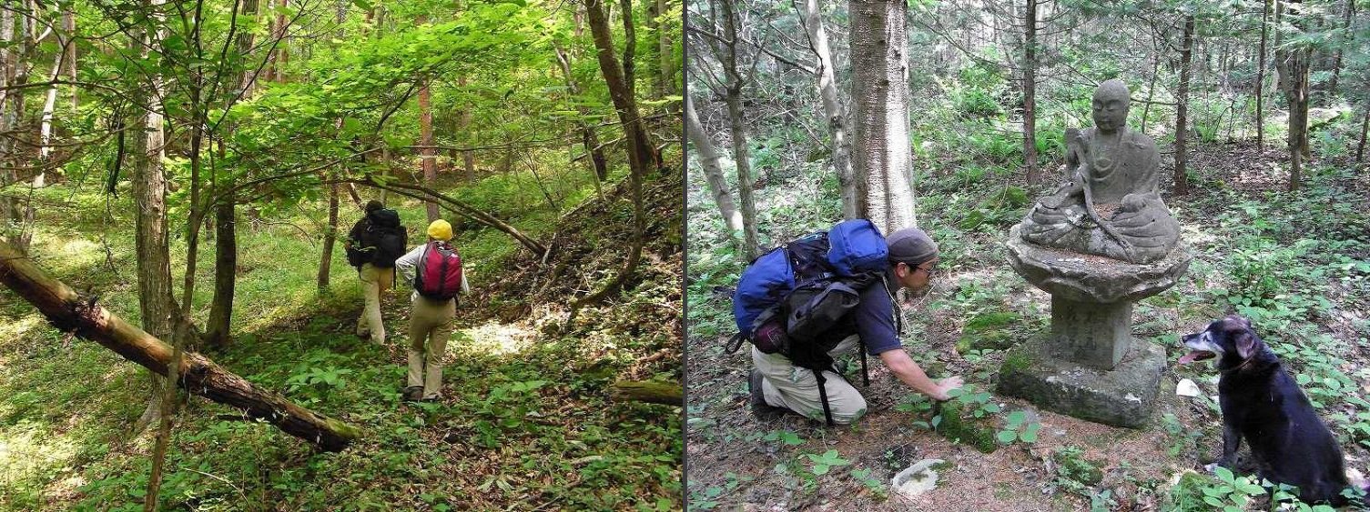 では、その峠道の北側、すなわち須玉町側の路傍に今も残る観音像を探しながらたどってみましょうというのが、この日の長沢さんの案で、お供はクリオ君。7年前に長のお別れとなったが、私はクリオ君が大いに気に入っていた。並みのチンコロとはわけが違うのである。利巧でおとなしく、それでいて野生味充分。蟻ヶ峰では脱兎?の勢いで野兎をとったったのを見ているし、長沢さんのいうところでは小鹿もとったこともあるそうだ。坂本桂さんからもらったチクワを二噛み三噛みで呑み込み、「もっとゆっくり味わって食えよ」と、その度に云われていた。 この項では、まずクリオ君を偲び、さらに愛惜の念をこめて先代のロッジ山旅号の1枚を加えておいた。 この車にもずいぶんお世話になった。(2018.9) 長沢註 クリオの想い出 山旅号の変遷 |