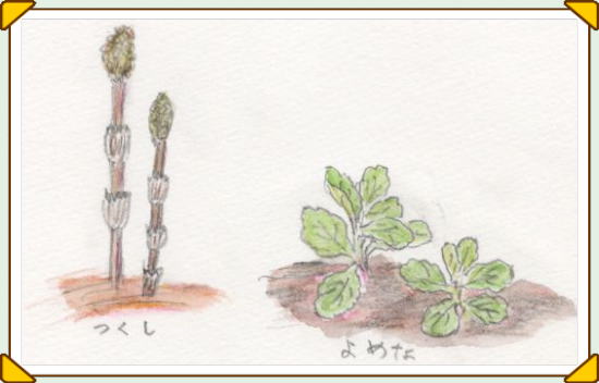 最初につくしを知り、自分の摘んだものが、晩のおかずのひとつになって「春がきたねえ」と話題になるのがうれしくて、よもぎ、よめな、かんぞう、とつぎつぎに覚えていった。それらはみんな家の近くの道端や原っぱに、春ごとに顔をだしていた。 つくしは梅干を入れて甘辛く煮て、おいしいおかずになった。よもぎは、お彼岸のぼたもちや草だんごになり、よめなは緑が美しく香りのよい、よめな飯にした。 そのころは料理は親の受持ちだったが、つくしのハカマとりは、こども達の仕事とされていた。これは、四国愛媛で、ものごころついた、わたしの両親が受けついできた、わが家の食文化だった。 なお、後年お付合いいただいた、深田久弥さんに伺うと、石川、福井で生れ育った深田さんも、やはり、つくしは好物だといわれたので、山歩きのついでに摘んだつくしを、何度か、世田谷松原のお宅までお届けしたことがあった。 そんなあるとき、玄関に出てこられた深田さんが、「今夜帰って来るんだが、いまは家内が留守でねえ」と、なんだか腫れぼったい顔をされていた。 後日、志げ子夫人によると「あのときは、折角用意して置いたおかずに手をつけず、このわただけなめて、お酒を呑んでいたので、じんましんが出てしまったのですよ」という話。つくしがじんましんに効くかどうかは分らないが、花粉症には、本当にそうした効果があるらしいと最近の新聞記事で知った。 |