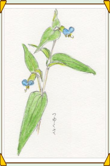 つゆくさは、ちょっとした空地、庭の隅、街路樹の根もとなど、どこにでも生えて、夏の朝小さいながら快晴の空のような、きらっと青い花を咲かせている。だれでもが、見て知っている草だろう。 子どもの頃、つゆくさの蕾や咲き終った花を、ままごとのかしわもちに見立てて遊んだ。実際に、山帰来(さるとりいばら)の葉に包んだ関西のお餅に形がそっくりなのだ。 でも、このつゆくさを本当に味わったことがある人は、意外に少ないのではないだろうか。 ゆでて、辛子酢味噌などで和えてもよいし、いためても、天ぷらにしてもよい。くせがなく、食べやすい野草だと思う。 |
