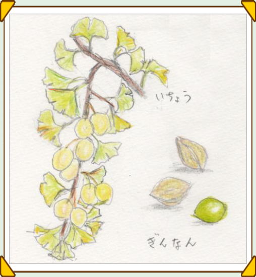 | ぎんなんは、イチョウの実。イチョウは古生代末から現代まで生き残った植物だといわれるが、ずっと古い時代に中国からもたらされたので「中国名の鴨脚子(葉の形を鴨[家鴨]の趾に見立てた)の北方音ヤーチャオから来たという説……、もう一つの銀杏もまた中国名で、これもやはり中国北方のギンアンからの転訛だという」(『日本の樹木』辻井達一・中公新書)とあって、たしかに山の中には見かけないが、山麓の神社や寺の境内などには古い大木が多く存在する。街路樹としてもよく植えられている。そして、その実は日本料理の秋の味覚、彩りとして、古くから使われているにもかかわらず、食材の収穫を目的に栽培されるようになったのは、割合近年のことだという。イチョウには雌雄があるので、雌株の下には秋になるとよく実が落ちている。ただし、この果肉は臭いし、触れるとかぶれるので、やっかいだ。 集めた実を、土にうめるか、水に漬けて果肉を除き、きれいにすると、銀光を帯びた灰白色の殻が現われ、お店でも売っている、いわゆるぎんなんになる。 イチョウの美しい黄色の葉が散りはじめるのは、実が落ちたあとになる。 昨秋登った石老山の山麓にある顕鏡寺の境内には、「ギンナンの皮は捨てないで、そのまま持ち帰って下さい」と、はり紙がしてあった。 |
