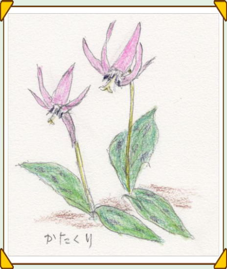 | かたくり(片栗)も春の低山を彩る花だ。昭和の前半ぐらいまでは武蔵野の雑木林にもいくらでも見られたらしいのだが、今は特別に保護された群生地のものが、「今週一杯が見頃です」などとテレビニュースになる時代になってしまった。 もう30年近く前、新潟の粟ヶ岳から宝蔵山へ歩いた5月初旬、宝蔵山の下り道では文字通り足の踏み場に困るような、花盛りのかたくりの大群生地を歩いたことを思い出す。 かたくりは、主にその厚く柔らかい葉をゆでで、酢みそ和えやサラダにするが、人によっては、おなかをこわすので、食べ過ぎない用心が大事だ。花はまことに可憐だが、葉は紫の油点のせいか、ちょっと不気味な気がするのは、わたしだけだろうか。 山菜として食べるのとは別のことだが、片栗粉というのは、本来、このかたくりの根を掘りあげて、乾燥精製して粉にしたものだったが、たいへん手間がかかるので、現在の片栗粉はほとんどが、馬鈴薯の澱粉で代用されるようになっている。 |