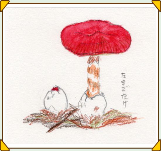 たまごたけのシーズンは夏が終ろうとする頃だ。この茸をおぼえたのは、もう40年も前で、きだ・みのる=山田吉彦(仏文学者)の『気違い部落周遊紀行』という本だったと思う。 きだ・みのるは、第二次大戦中に恩方村(現八王子市)に疎開したあと、戦後もしばらく住み続けて、その集落の人々との生活などを題材に、ほかにも『気違い部落紳士録』『霧の部落』などの本を書いた。 その中の1篇に、つぼからまだ顔を出さないたまごたけの幼菌を採ってきて、夜、子供の枕元にその卵のような茸を置いてやると、翌朝、目を覚ました子供が、卵からかえったような赤い茸を見て、びっくりしたり大喜びしたりする様子が書かれていたし、また、村の人たちは「こんなウザッタイ(怪しげな)もの」といって食べないが、バター炒めにするとおいしい茸だともあった。 それで、わたしは次に山へ行ったときに、この記述どおりの茸を見つけて食べてみたところ、ほんとうにおいしかった。 たまごたけには、よく似た毒茸べにてんぐたけがあるから注意しなくてはいけない。 たまごたけの傘には、縁のほうではっきりしている放射状のすじがあり、軸には黄褐色の模様がある。 べにてんぐたけの傘には、白いつぼの破片が点々とついている。軸は白く模様はない。 |