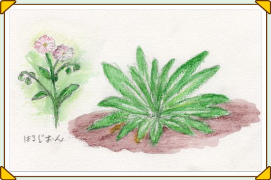 はるじおん(春紫苑)は「はるしおん」が正しいという人もある。都会の街中から郊外の山すそまでの、どこにでも見かける草なので、貧乏草などと呼ぶ土地もあるようだ。 はるじおんの蕾はうなだれているが、開いた花は直立する。花弁はうすいピンク色のものが多いが、白い花もある。花茎につく葉は茎を抱くような形になる。 食べるには、地面に丸くひろがった葉の中心から花茎が伸びきらないうちがよい。葉の柔らかそうなものを採ってきて、茹でて水にさらし、刻んで和えものにする。ごまみそ、山椒みそなどのほか、くるみやピーナッツ和えもおいしい。かなりコクのある葉なので、和えごろもはやや濃厚なほうが、葉の毛羽立ちも気にならない。 |