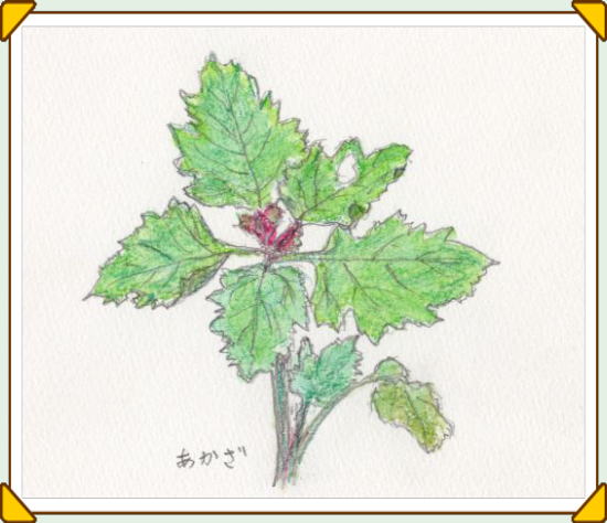 あかざ(藜)、しろざ(白藜)は、つい近年までは道端や空地に生える、ありふれた雑草だった。それが、この2、3年あまり見かけなくなり、どこへいってしまったのかと思っていたが、今年になると近所の空地で、何本も大きく育っているのに気がついた。 柔らかい茎の先のほうを摘んで、新芽の根元についた赤い粉のような毛(この毛が白いものをしろざという)をよく洗い落とし、茹でたあと水にさらして水気をきり、ごまよごしなどにする。 あかざは人によって、味の評価が大きく違うようだ。「こんなにおいしいものはない」という人もいる一方、粗末でまずい食物を例える「あかざの羹(あつもの)」という言葉もある。 昔、会津の辺りでは栽培もされていたようで、お正月料理にあかざはつきものだったと、『会津の郷土食』(星孝光著)で読んだ。 これは雪深く、長い冬に、乾燥保存したものを戻して料理していたらしい。 わたしは、あかざを「じゅうねん」(えごま)で和えたらおいしいのではないかと思うが、実際に会津の人たちが、そうした料理を作るかどうかは知らない。 |