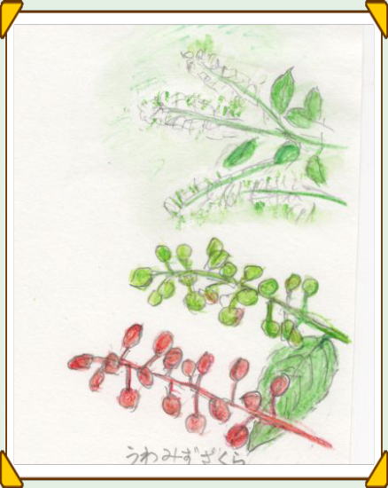 | うわみずざくら(上溝桜)の花は、一見さくらとは思えない、細長い穂状の花で、4〜5月に咲く。しかし、よく見ると個々の花はさくらの名にたがわず5枚の花びらを持っている。 この蕾や若い実を、福島や新潟の人たちは杏仁子(あんにんご)と称んで塩漬けにして賞味する。びん詰などでお土産に売っていることもある。 実の若いうちは果実酒にしてもよいそうだ。いずれも、よい香りがする。 花は塩茹でにすると、香気があって酒の肴によいという。 上溝桜の名の由来は、昔、亀の甲を焼いてできた割目の模様で吉凶を占ったが、その亀の甲の代用にこの木の材を使ったらしく、木の上側に溝を彫ったことによると『大辞林』に出ていた。 |