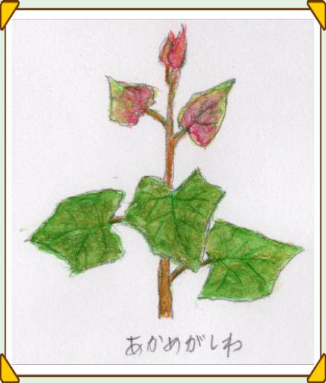 | あかめがしわ(赤芽柏)は、陽当りのよい山野に自生するというが、意外に都会の街路樹の回りとか人家の間など、街なかでも若い木はよく見かける。ただし陽当りが悪いと枯れてしまうそうで、市街地であまり大きな木を見たことはない。 この木の芽は出たばかりのときは赤い色をしている。そこからきた名なのだが、ゴサイバ(御菜葉)、サイモリバ(菜盛葉)の名があり、昔、その大きな葉を食器としてよく使ったことによるという。 食用にするのは赤い新芽で、茹でて水にさらして炒めものや和えものしたり、生の若葉を天ぷらにする。私は新芽をくるみ和えで食べてみたが、見た目より柔らかくおいしかった。 |