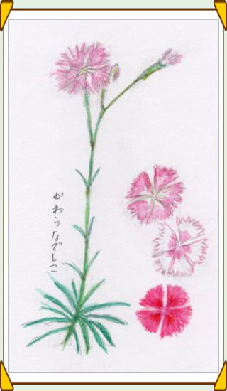 | なでしこ(撫子)もエディブルフラワーとして流通している。その仲間のカワラナデシコは、かつては東京近くの山や河原、原っぱなどで、初夏から初秋にかけてよく見かける花だった。しかし、近年は、そうした中低山では植林された杉や桧の日陰で育ちにくくなったり、鹿の食害でずいぶん少なくなってしまった。 なでしこを、その属名(dianths)の範囲まで広げると、カーネーションやせきちく(石竹)、とこなつ(常夏)なども含まれて、いずれも食べることができる。食材として出回るのは4月から12月までと長い。花の色は白から濃淡様々なピンク、濃い赤まである。 山野で、このかわらなでしこがたくさん咲いているところを見つけても、採るのは飾り用の1、2輪にしておきたいものだと思う。 きんぎょそうもなでしこも、丸ごと飾りに使う場合はがくを取らないが、食べるときは苦味のあるがくをはずすのが普通である。色とりどりの花を細かく刻み、白っぽいクリームチーズやヨーグルト、サワークリームなどに混ぜてディップにするとか、ケーキやサンドイッチにクリームなどで貼りつけて飾るなどの使い方がある |